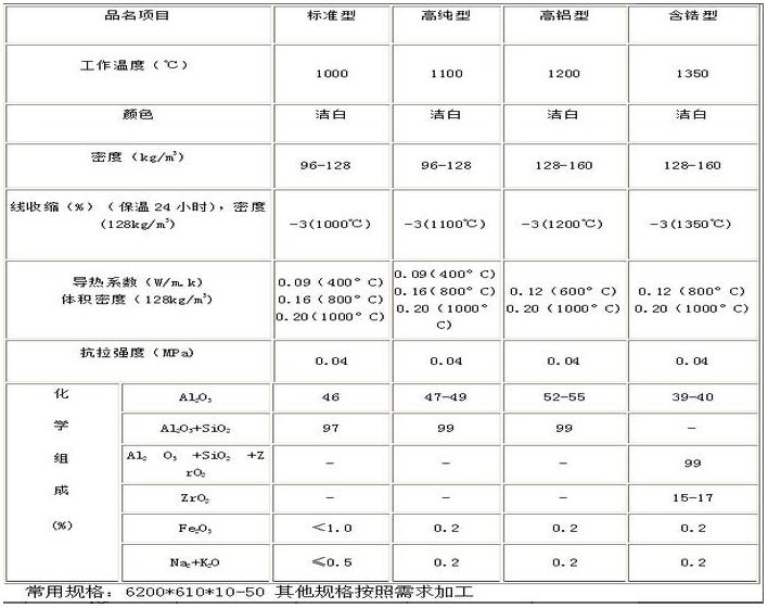 產品特點是低導熱率、低熱容量,優(yōu)良的熱穩(wěn)定性及抗熱震性,優(yōu)良的抗拉強度,優(yōu)良的隔熱、防火、吸音性。適用范圍工業(yè)建材窯爐、加熱裝置、高溫管道壁襯,電力鍋爐、氣輪機及核電隔熱,化工工業(yè)高溫反應設備及加熱設備的壁襯,高層建筑防火、隔熱,窯爐爐門、頂蓋隔熱,高溫過濾材質。