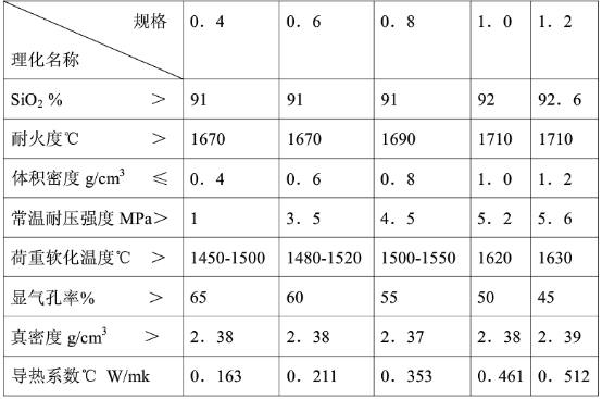 輕質硅磚的理化指標如下表: