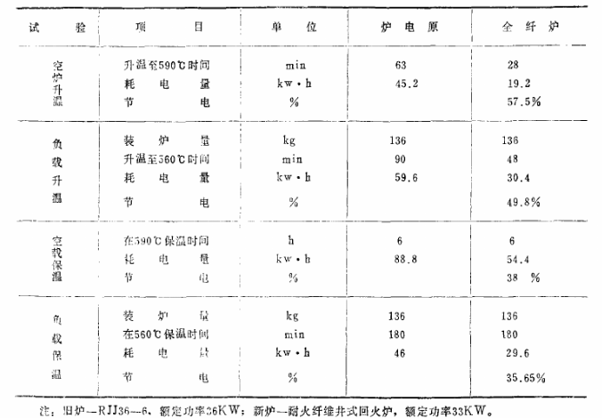 利用RJJ36-6型井式回火爐爐殼來制造纖維井式回火爐時,除儀表、電熱絲、耐火磚、金屬構(gòu)件等費用外,僅用去硅酸鋁耐火纖維氈50kg、蛭石100kg,價約人民幣500元,按正常生產(chǎn),不用半年的節(jié)電費用就可補償投資費用。