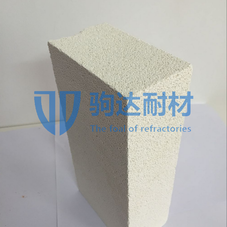 鄭州駒達(dá)耐材生產(chǎn)的JM28莫來(lái)石聚輕保溫磚成品外觀潔白,棱角分明、尺寸準(zhǔn)確。其理化指標(biāo)為:Al2O3=67.99%,F(xiàn)e2O3=0.87%,體積密度為0.8g/cm³,耐壓強(qiáng)度為2.3MPa,1500℃8h燒后線變化為-0.1%,熱導(dǎo)率(800℃)為0.24W·m-1·K-1.