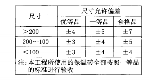 1)保溫磚進(jìn)場(chǎng)驗(yàn)收。按照燒結(jié)空心磚允許偏差(見表2),燒結(jié)空心磚外觀質(zhì)量的要求進(jìn)行材料驗(yàn)收,同時(shí)按照每3萬塊為一驗(yàn)收批(不足3萬塊也按一批計(jì)),對(duì)保溫磚的抗壓強(qiáng)度和密度進(jìn)行復(fù)試,嚴(yán)把原材進(jìn)場(chǎng)關(guān),有效保證了工程實(shí)體的質(zhì)量。