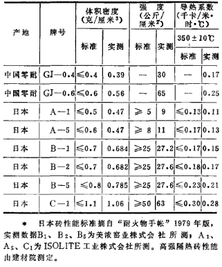 表一 高強(qiáng)隔熱磚與日本隔熱磚性能比較