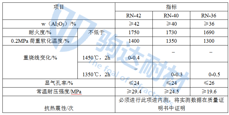 YB/T5107-1993將熱風(fēng)爐用黏土質(zhì)耐火磚按理化指標(biāo)分為RN-42、RN-40、RN-36三種牌號(hào)。其理化指標(biāo)、尺寸允許偏差及外觀見(jiàn)表1和表2。