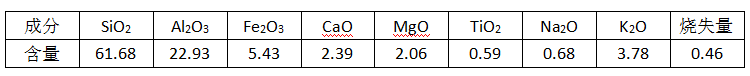 漂珠中Al2O3含量偏低,而含助熔物Fe2O3、CaO、MgO、Na2O、K2O等偏高。經(jīng)檢驗(yàn),漂珠的耐火度為1350℃。