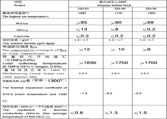 5、氧化鋁空心球理化指標(biāo)